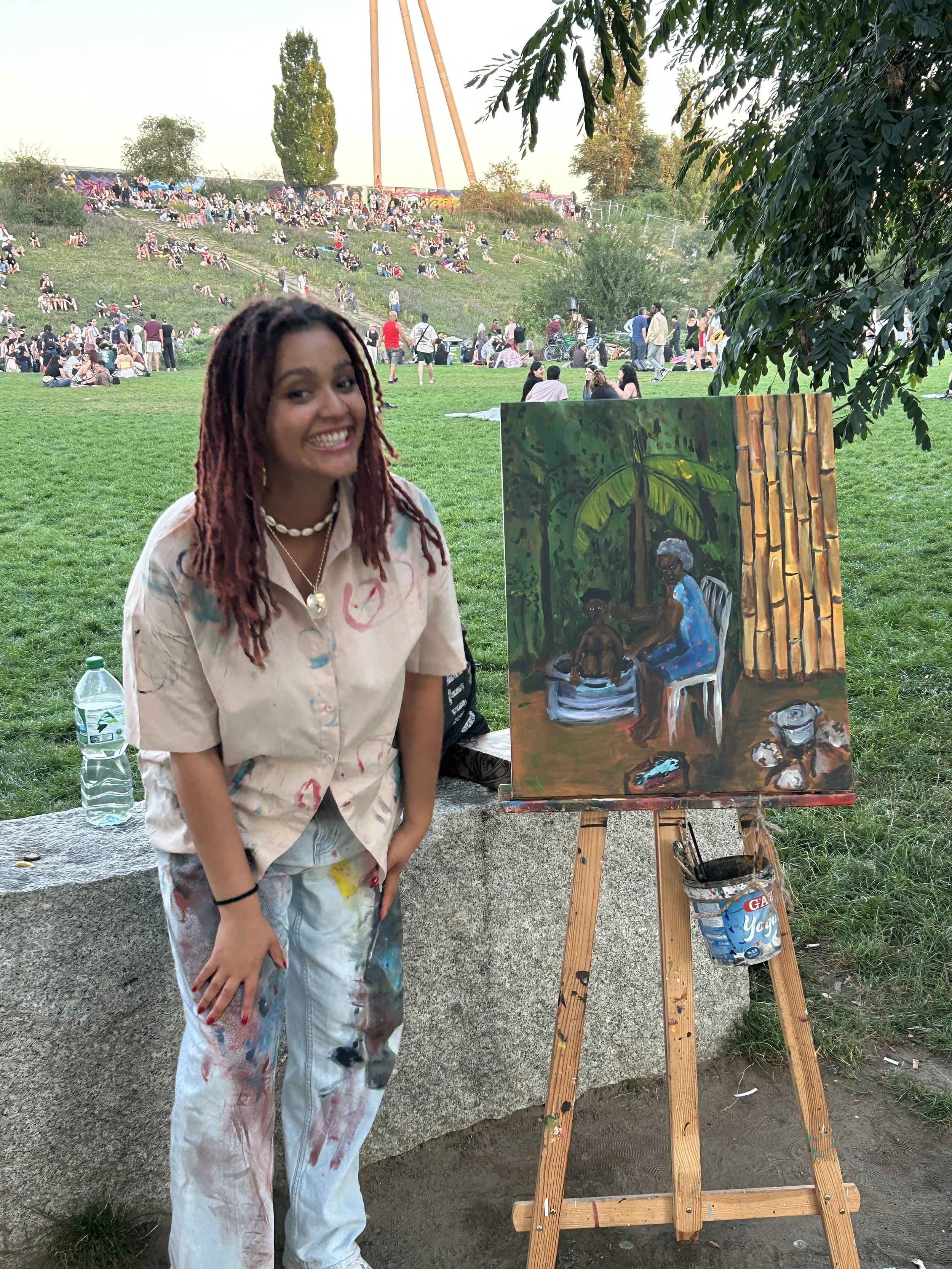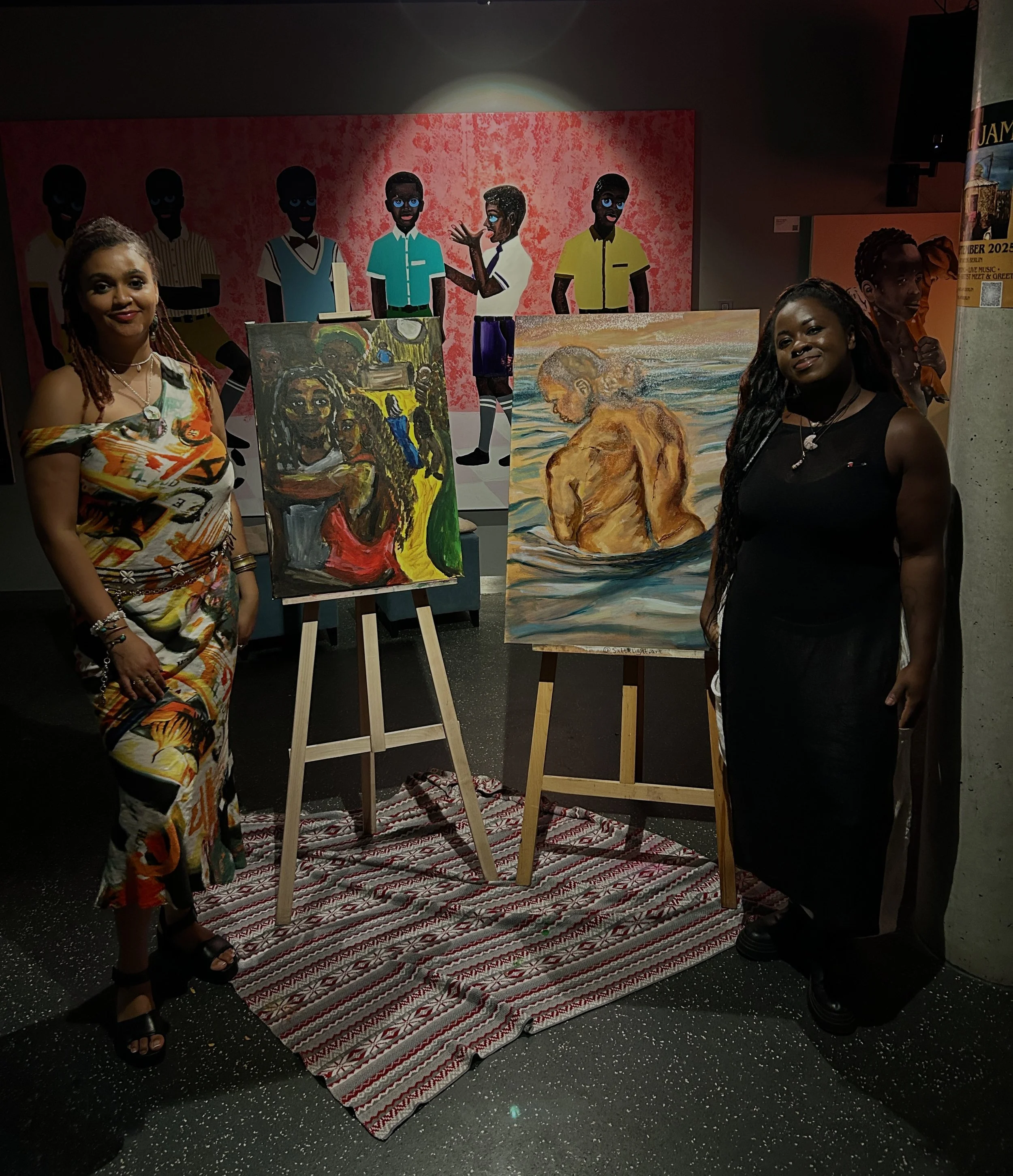 Satta Briama, a Berlin-based multidisciplinary artist, showcased powerful oil and acrylic works centered on Black womanhood, weaving emotion and storytelling into each piece.